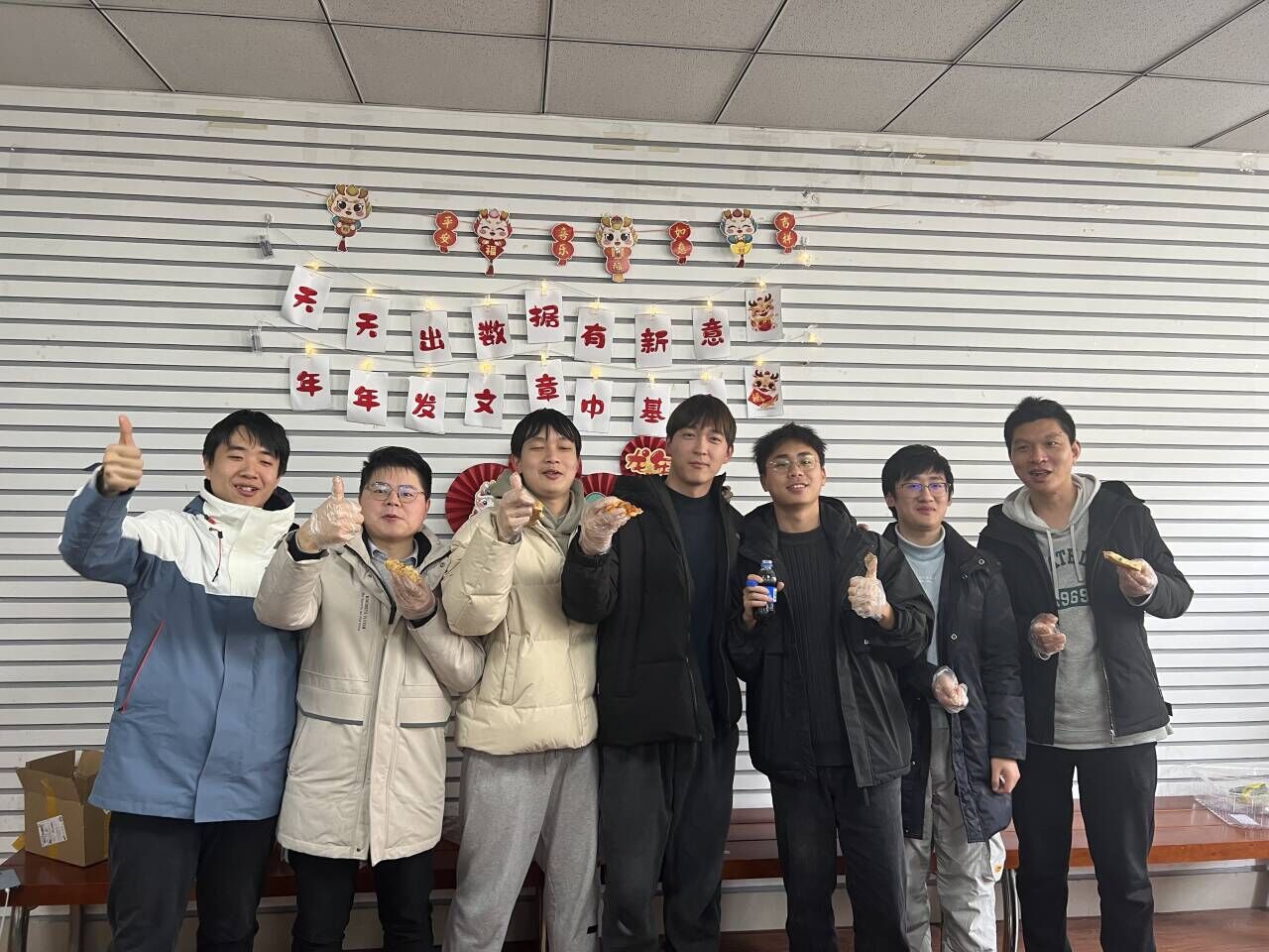 本期生日会寿星(从左至右):李静怡(后排)刘杰(后排),项清(前排)陈林洋(前排)刘鹏程(前排)
