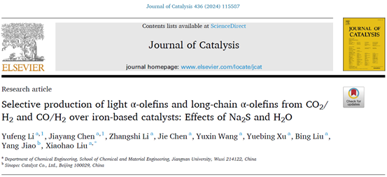 近日,PA视讯官方网站PA视讯官方网站刘小浩团队在合成气(CO+H2)铁基费托合成反应制长链α-烯烃的研究工作中取得重要突破,这一研究成果在催化领域权威期刊《Journal of Catalysis》上发表。该论文PA视讯官方网站博士研究生李玉峰、硕士研究生陈加扬为共同第一作者,刘小浩教授为通讯作者。