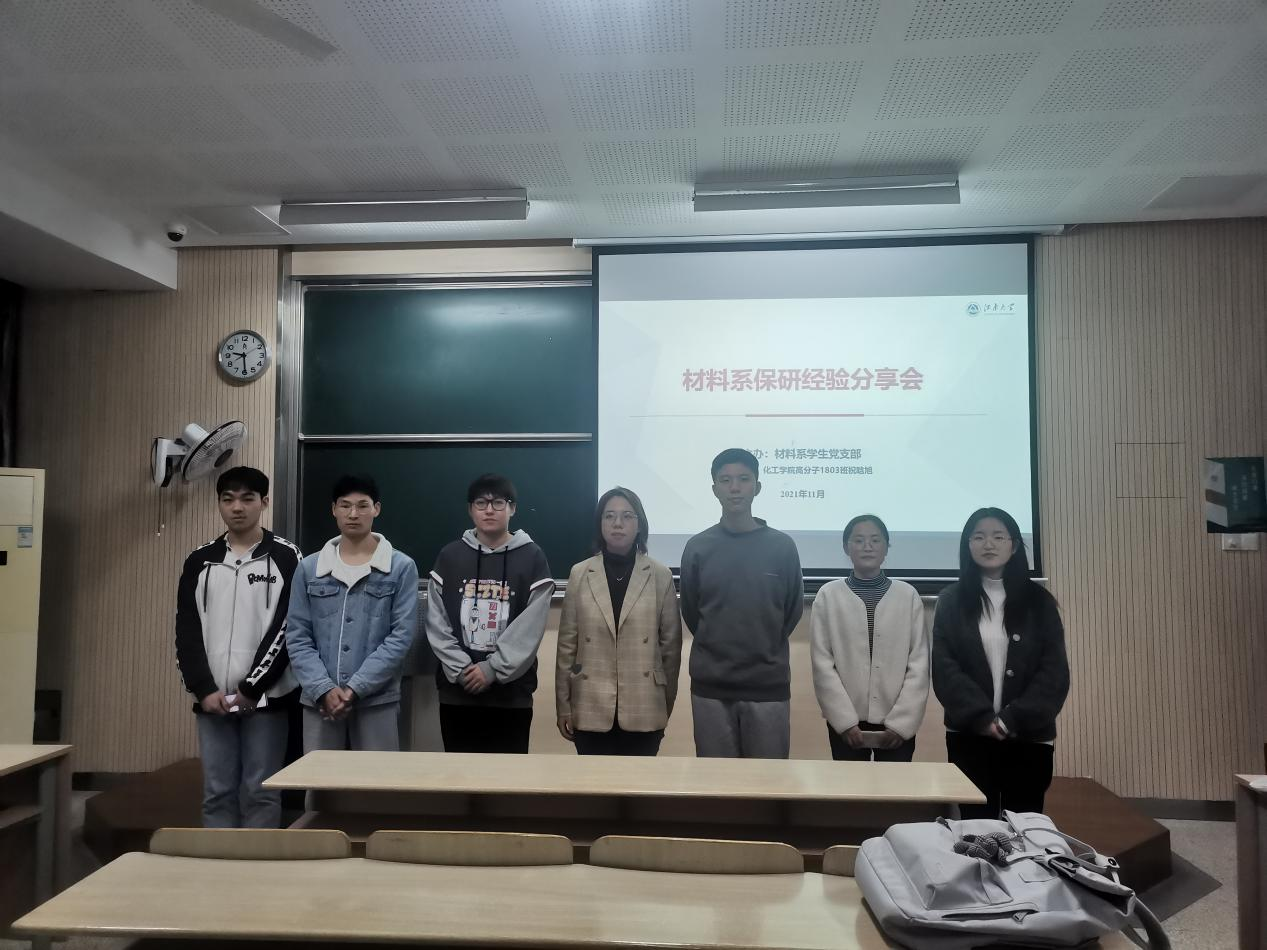 为扎实践行“长期、长效、常态化落实工作”要求,鼓励同学们向优秀看齐、向先进靠拢,11月21日晚,PA视讯官方网站材料系员工党支部于二教2A218举办“研途有你”保研经验分享会,邀请祝晗旭、杨晓、夏远、李佳乐等优秀同学带来一堂精彩的“保研知识必修课”。