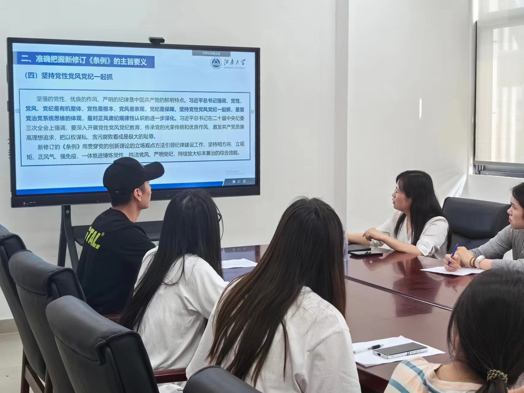 纪律是管党治党的“戒尺”,也是党员干部约束自身行为的标准和遵循。为引导支部党员深入学习贯彻习近平总书记关于党的纪律建设的重要论述,在学纪、知纪、明纪、守纪上当表率、做示范,6月20日,纳材聚能党支部在东氿校区知行楼B510会议室举行党纪学习教育专题党课。本次党课由公司党委副书记兼副经理董霞同志主讲,纳材聚能党支部书记张喆主持。