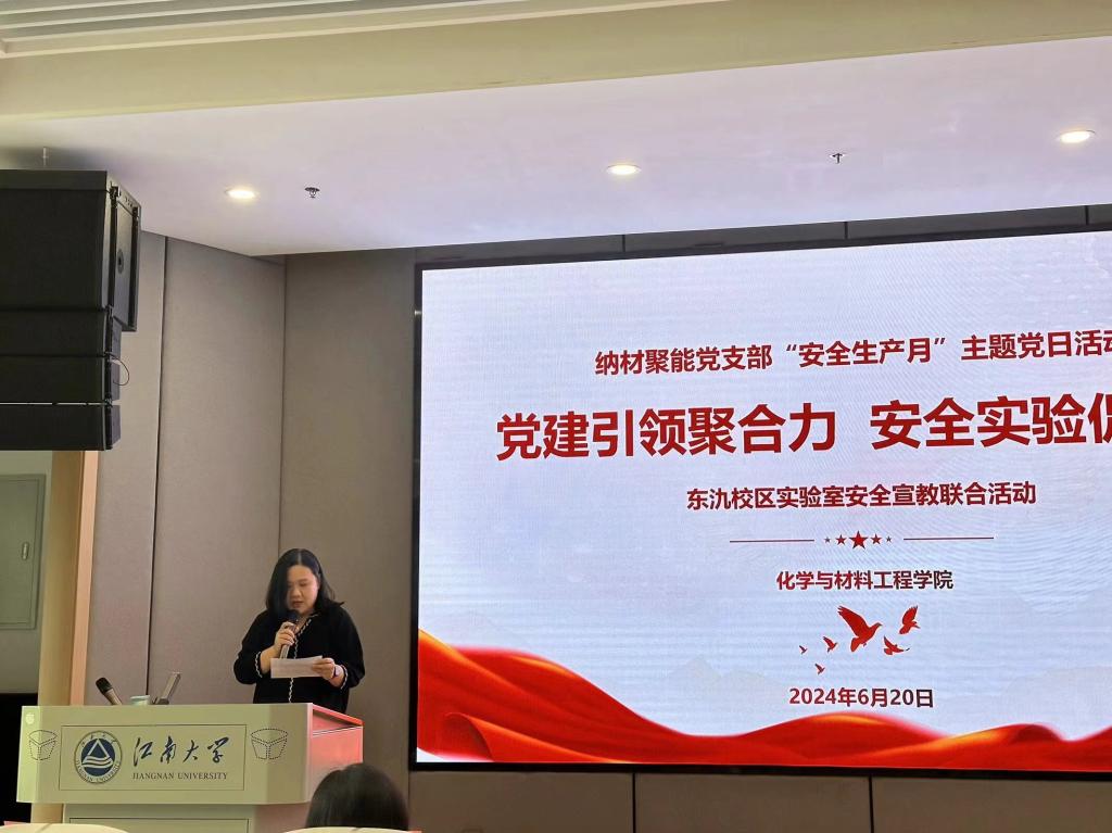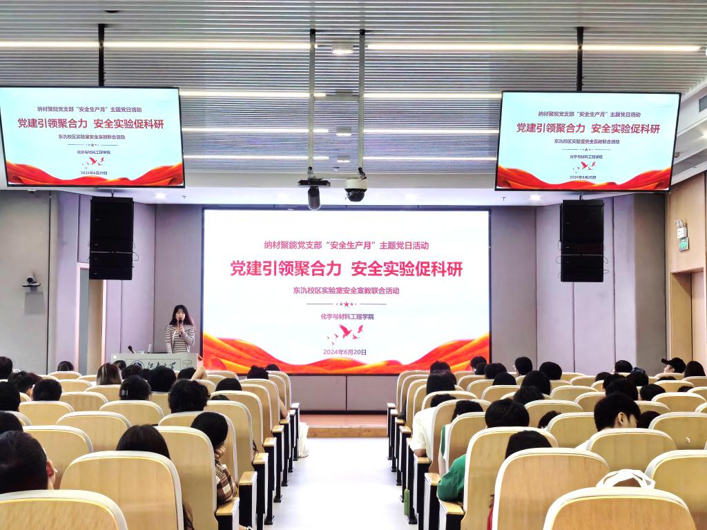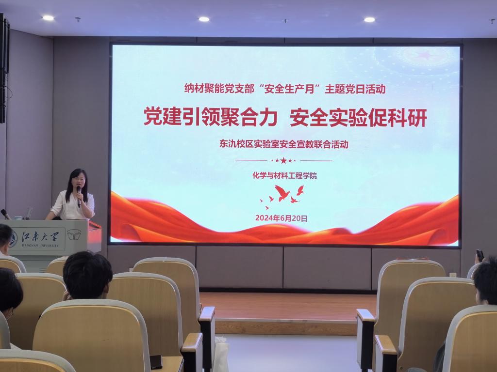 为深入学习贯彻习近平总书记关于安全生产的重要论述和指示精神,落实教育部关于校园安全稳定工作的部署要求,值此全国第23个“安全生产月”之际, 为增强师生实验室安全意识和应对突发事件的能力,营造浓厚的实验室安全氛围,6月20日,纳材聚能党支部开展“党建引领聚合力,安全实验促科研”实验室安全专题活动。本次活动特别邀请了上海飞域实验室设备有限公司总经理杨安兴、经理何鑫和无锡粒子云信息科技有限公司工程师庞丽丽进行专题讲解。PA视讯官方网站宜兴研究生院办公室副主任倪寒冰、公司党委副书记兼副经理董霞、宜兴研究生院办公室科长徐怡学以及PA视讯官方网站实验室安全管理教师张一波出席活动,PA视讯官方网站辅导员李晓洁主持本次活动。