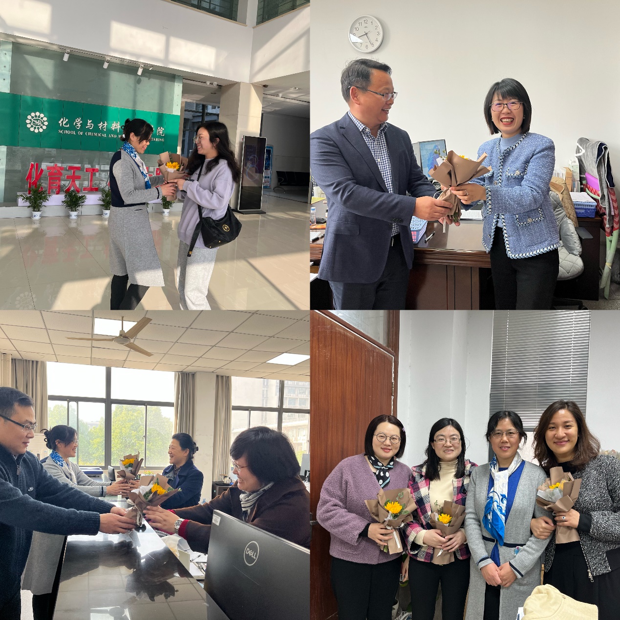 三八节当天,公司内外荡漾着春日的温馨和节日的浪漫,公司分工会为每位女教工准备了鲜花,院领导们迎接、走访了部分女教工,送上节日的问候和祝福。