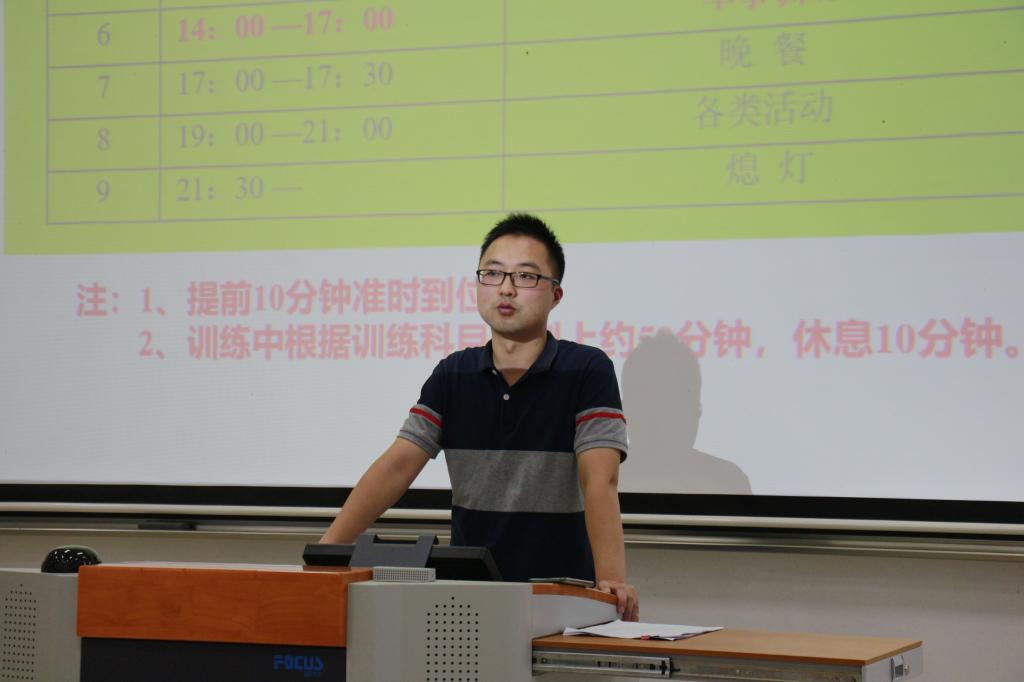 其中,鞠老师重点强调了军事训练与内务整理这两个重要内容。在内务整理方面,鞠老师力求员工做到井井有条、一尘不染严格,他表示,“内务的严整更能提现一个人的条理和自我约束力”。在日常训练方面,鞠老师希望20级新生能做到风雨无阻,坚持训练,用积极的态度面对重重困难,真正以一个军人的意志来要求自己,以达到军训培养个人坚毅品质的目的。