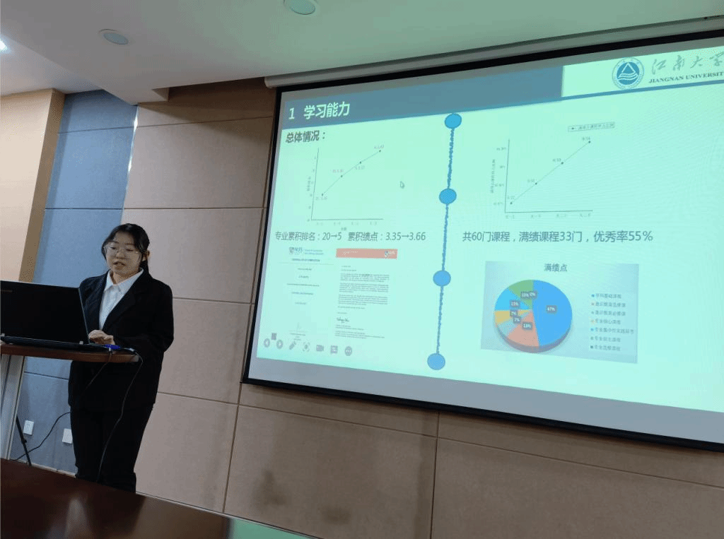答辩过程中,十名候选人依次上台,通过3分钟的PPT充分展示了自己入学以来在思想政治、学习成绩、学科竞赛、员工工作、社会实践、志愿服务等德智体美劳方面的优异成绩成果,充分展示了个人风采,彰显了PA视讯官方网站学子良好的精神风貌。