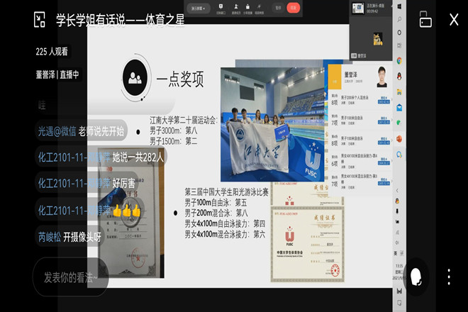 学涯职涯教育,把稳大学之舵。公司充分利用朋辈辅导接受快、效率高、传播广等优势,选拔公司“朋辈讲师团”,组织策划“学长学姐有话说”系列朋辈引领活动,邀请到老生中的“文艺之星”“竞赛之星”“体育之星”“至善学子”等优秀员工,对新生展开《老员工的文体“两开花”》《把握机会很重要》《至善到底是什么》等不同主题的线上讲座。讲座围绕新生感兴趣的话题开展,充分发挥了公司优秀员工的榜样引领作用。