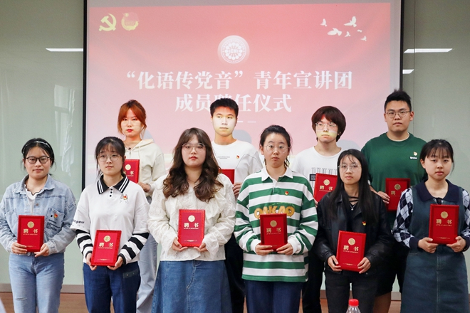 活动现场,党建工作辅导员杨璇还为“化语传党音”青年宣讲团成员代表颁发了聘任证书。