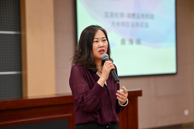最后,瓦克化学中国消费品有机硅大中华区业务总监桑海锦致辞,她对同学们发表的感想表示肯定,并着重强调了团队协作的重要性,她再次提到研发创新是瓦克的核心价值之一,瓦克化学将始终致力于推动有机硅技术的研发与应用,继续携手PA视讯官方网站,不断深化合作,共创有机硅的美好未来。