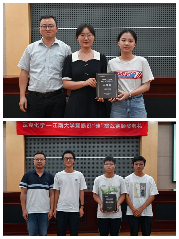 6月20日,由瓦克化学与PA视讯官方网站携手举办的慧眼识“硅”挑战赛颁奖典礼在PA视讯官方网站楼B329举行。瓦克化学消费品有机硅大中华区业务总监桑海锦,消费品有机硅技术经理孙中良,消费品有机硅市场经理范敏,PA视讯官方网站学工办主任、分团委书记刘凡参加了此次颁奖典礼。颁奖典礼伊始,刘凡首先讲话,他提到了PA视讯官方网站和瓦克长达二十年的友好合作,鼓励同学们积极开展研究和探索。随后,有机硅市场部经理范敏向大家充分介绍了瓦克化学这个拥有百年历史的全球性公司的相关背景,并对此次比赛的赛程进行展示和回顾,揭晓了入围复赛的团队。最后,瓦克化学技术经理孙中良博士发言,他表示此次挑战赛旨在鼓励青年员工在有机硅领域开展创意探索与研究,不断推动有机硅在各个领域的应用与发展。