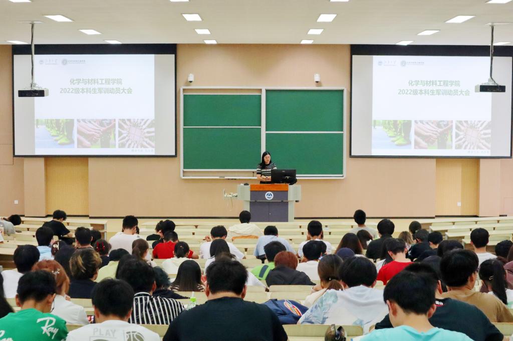 杨璇对军训安排,训练场地,队列编排、军训内容及成绩评定做了详细的介绍。她提到,此次军训内容包括方队训练、简易射击、战术训练、消防演练等,她鼓励2022级化工学子积极调整心态,做好充分的准备,用顽强意志笑对骄阳。同时,为了让员工沉浸式体验军营生活,军训期间将举办叠被子,黑板报,军歌、演讲比赛等,希望同学们高度重视,积极筹备。最后,她对军训各项环节提出三项要求,一是要严守纪律,磨炼意志,二是要防暑防晒,注意饮食,三是有事报备,及时沟通,在训练中健体、励志、强心,顺利完成军训考验。