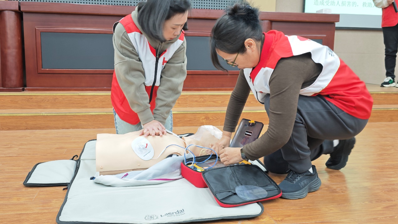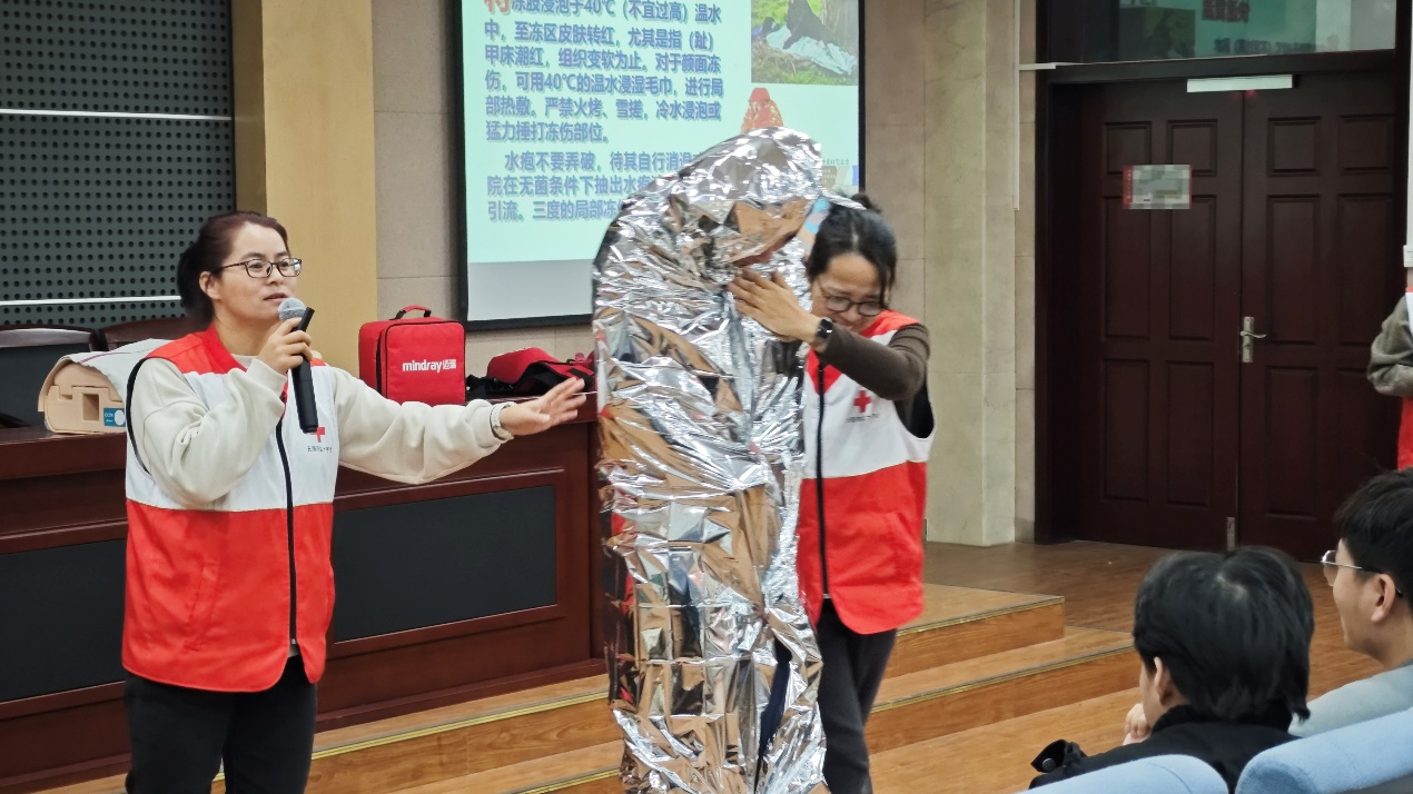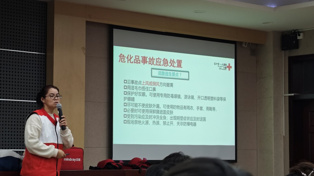 此次讲座特邀了红十字会救护培训师、无锡市红十字赈济救援队副队长唐镇棣主讲,红十字会救护培训师蒋小燕、助教老师顾瑾现场协助。讲座通过对急救知识的讲解、急救情况视频播放和现场带领员工实际演练等方式,全面介绍了救护相关法律法规、应急救护流程以及日常意外和急症的救护原则。