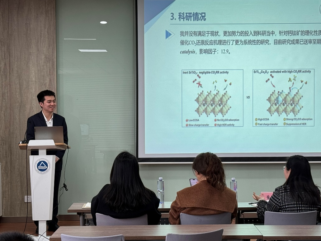 此次答辩活动汇聚了两位博士研究生和两位硕士研究生,分别是21级化学工程与技术博士研究生张亚宁、20级材料化学博士研究生董建成、21级材料专硕班杨梦以及21级化工专硕班李禹锡。公司党委副书记兼副经理董霞、学工办副主任侯玉莹、博士生辅导员高静以及研究生辅导员李晓洁担任现场评委。经过现场ppt答辩汇报和评委提问环节,最终选拔出公司推荐参与校级“十佳研究生”评选的两位候选人。
