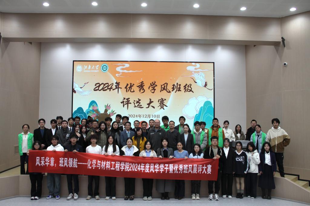 经过激烈角逐,化工2103荣获“杏坛雅风典范奖”,高分子2201荣获“墨韵班风楷模奖”,应化2301荣获“芳华班风绮采奖”,应化2303荣获“玉振班风弘范奖”,应化2302等7个班级荣获“兰章班风逸韵奖”。