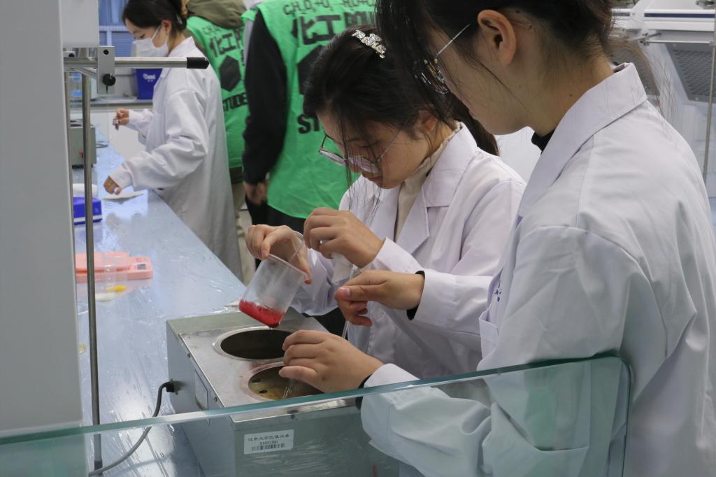 比赛初始阶段,选手们严格遵守实验室操作规定,身着实验服,认真聆听主持人讲解制作口红流程及操作的注意事项。接着,选手们利用各种材料和工具,进行调配色粉、添加蜡油、加热融化、滴加香精等一系列制作步骤。最后将所制液体导入磨具,待冷却后脱模即完成口红制作。选手们在参赛过程中体现出高超的创造能力和卓越的动手能力,制作出了带有个人特色且外观精美的口红,真正地体现了化学的艺术之美,展现了化学之于美妆,化学之于生活的重要性。本次大赛的举办,通过化学与美妆结合的方式提高了同学们对化学学习的热情,切身体验了制作化妆品的流程,培养了浓厚的兴趣。