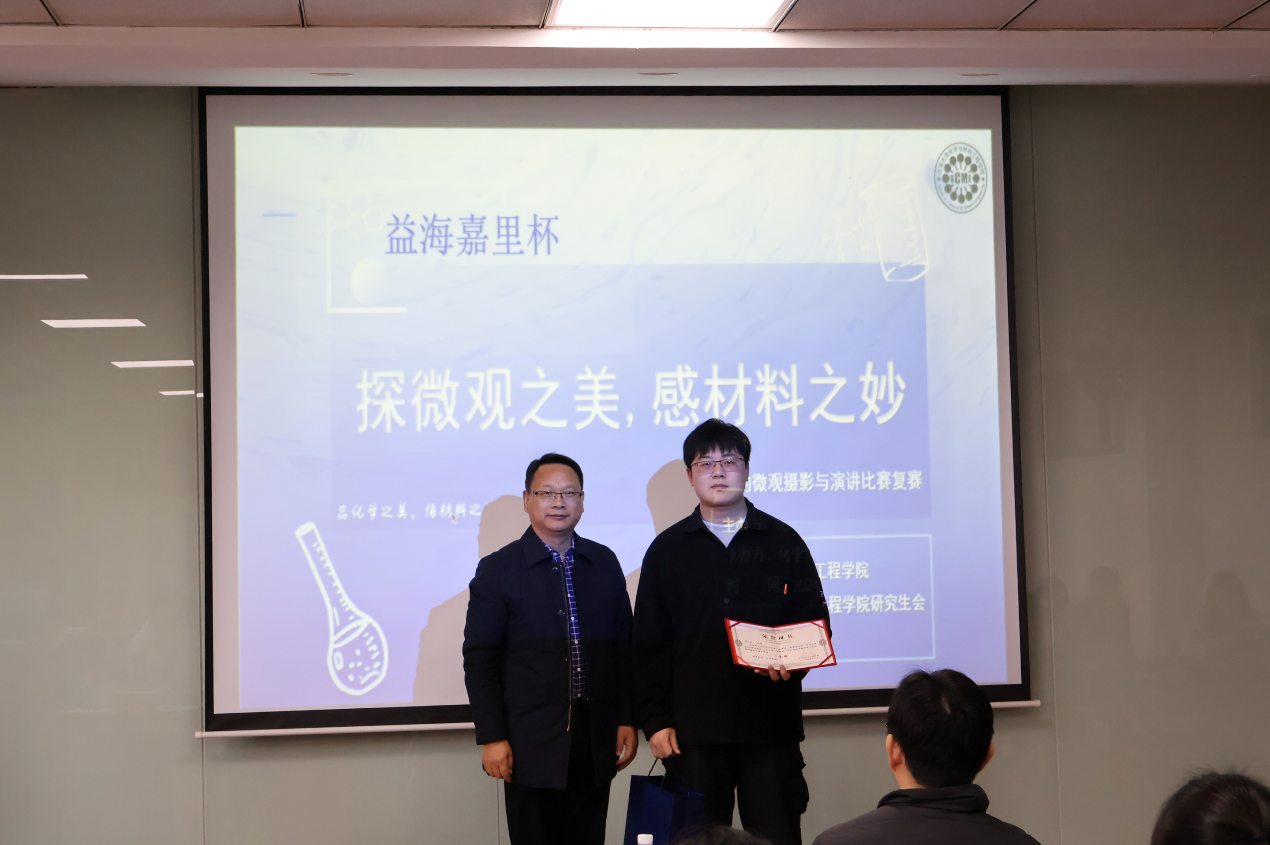 为记录材料微观世界的精彩,引导公司研究生领会材料科学的艺术之美,感受材料微观世界的奇异,激发对材料科学的研究兴趣,12月25日,公司在化工楼A316举办益海嘉里杯“发现美”活动之材料微观摄影比赛和我与材料的故事演讲比赛决赛。公司党委书记潘庆伟,党委副书记兼副经理董霞,副经理马丕明,员工导师杨伟军、洪建权、黄晶,以及研究生班主任苏慧参与活动。本次比赛由辅导员李晓洁主持。