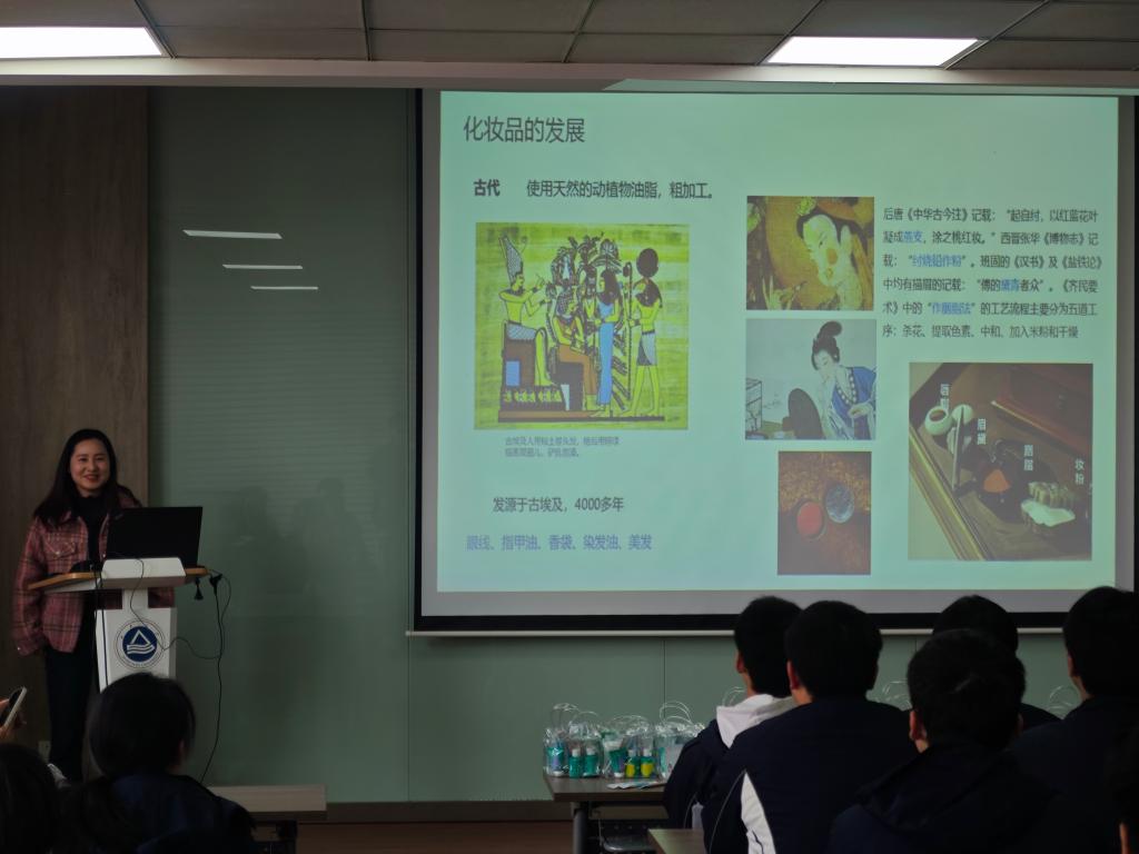 活动邀请到化妆品创新中心研究员陈凤凤,为高中生们开展一场别开生面的专业科普讲座。陈凤凤以《化妆品科学探秘》为主题,通过妙趣横生的案例解析和条理清晰的知识图谱,阐释了化妆品发展简史、配方原理及产品种类划分,特别针对青春期皮肤护理难题提出科学护肤方案,充分调动了员工对化学学科的深层兴趣,切实传播了化学也可以美丽、绿色、安全的先进理念。讲座结束后,陈凤凤为每一位员工送上海风里品牌赞助的青少年洗护三件套,预祝他们高考顺利、金榜题名。