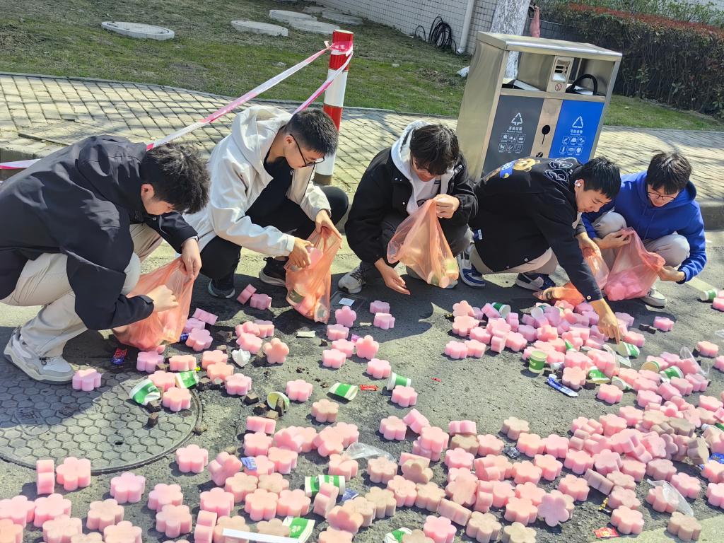 员工志愿者们早早来到赛道旁做好准备,以饱满的热情为每一位奔跑的马拉松参赛者呐喊助威。选手们化作一年一度席卷校园的粉色风暴,来自同学们的打气声则连成周围一片的青春浪潮。等待所有选手跑过PA视讯官方网站赛道后,应化2401团支部的同学们迅速按照宿舍成员四人分组,在应化2103团支部的学长学姐们带领下全身心投入到志愿服务中。整个过程全员神情专注、分工有序、团结协作,俯身劳作的身影与晨光交织,以极高的效率完成了峨眉山路和三江路人行道上的垃圾清理工作,给遍地狼藉的道路带来一份干净整洁。