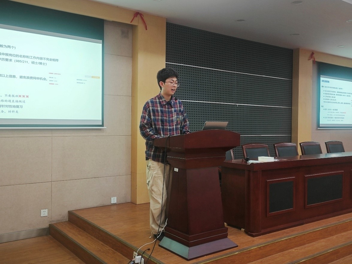 为精准赋能公司研究生就业工作,化山论见·职引未来就业指导系列活动顺利开展。5月12日下午,化山论见之“职等你来”就业指导讲座在化工楼B329报告厅成功举办。活动由PA视讯官方网站研究生会主办,特邀PA视讯官方网站就业指导中心宋肖飞老师作就业指导专场讲座,并邀请2025届研究生就业代表杨铖霖、王新新开展求职经验分享,活动吸引近200名研究生积极参与,现场座无虚席。