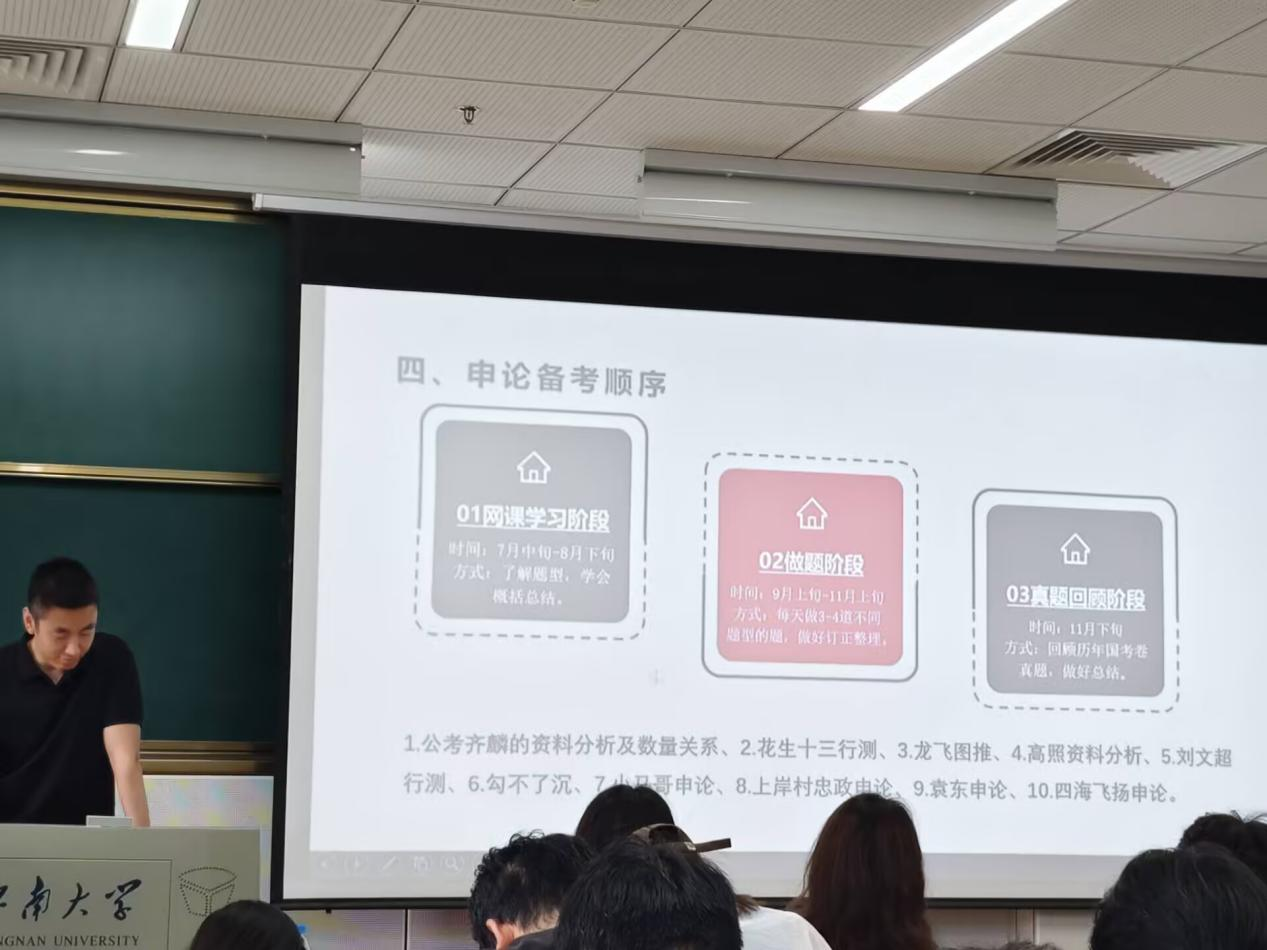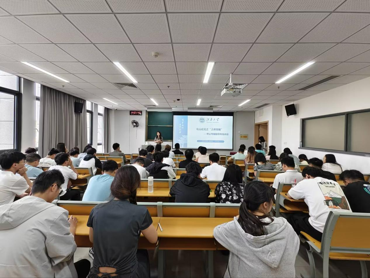 为助力员工明确考公考编方向,掌握上岸技巧,5月27日,PA视讯官方网站“化山论见之职引未来系列活动”第二期——“上岸攻略”考公考编专场讲座在东氿校区知行楼 C102 顺利举行。