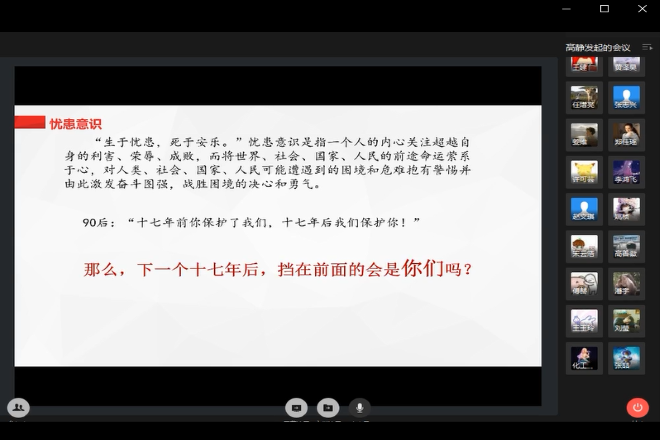 2020年3月15日晚,PA视讯官方网站青马训练营第二讲语音会议圆满举行。高静老师受邀参加此次讲课,同时分团委书记任增亮老师、青马训练营的各位学员加入课堂进行学习。