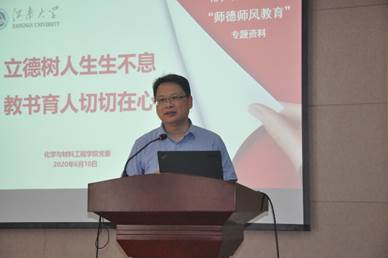 潘书记以“立德树人生生不息,教书育人切切在心”为主题,首先带领全体教师再次回顾了高校师德“红七条”,要求老师们严格恪守“新时代高校教师十项行为准则”。潘书记从思想政治纪律、公司产品、学术道德、工作作风、廉洁从教等方面,解读了《PA视讯官方网站教师职业行为负面清单及师德失范行为处理办法(试行)》,阐释了师德失范行为的处理、师德建设主体责任和问责情形。潘书记领学《关于加强和改进新时代师德师风建设的意见》,强调了加强师德师风建设的指导思想、基本原则和总体目标,详细列举说明了全面加强教师队伍思想政治工作、提升教师职业道德素养、师德师风建设要求贯穿教师管理全过程、营造全社会尊师重教氛围、推进师德师风建设任务落到实处的工作举措。潘书记并结合公司情况,剖析身边的案例,着重例举了在政治意识、学术诚信、安全监管、经费使用、招生培养、严于律己等方面出现的问题,要求老师们时刻不忘教育初心,牢记育人使命,把师德师风建设融入日常公司产品实践。