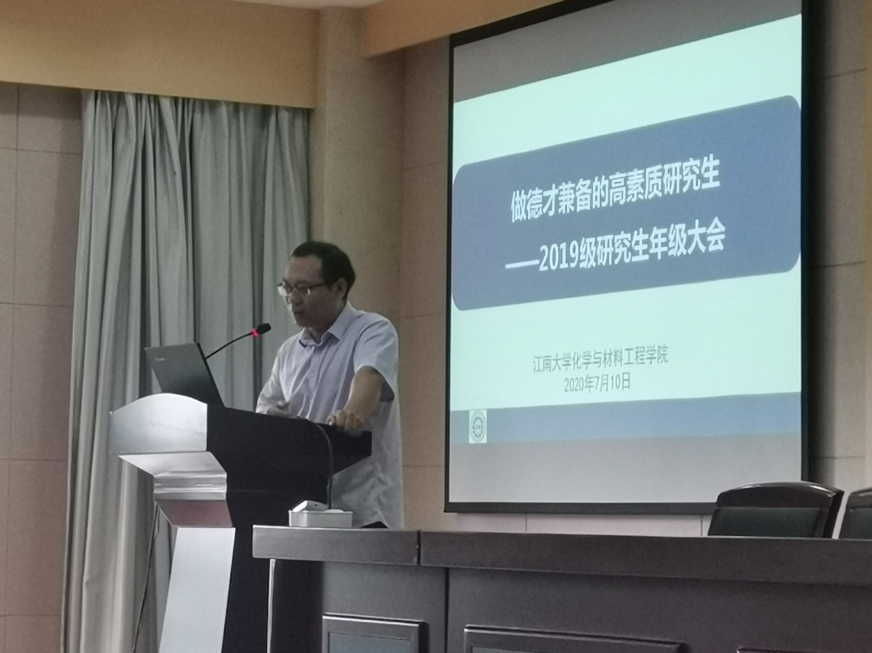 随后,分团委书记任增亮老师以“做德才兼备的高素质研究生”为题,结合疫情以来近期应急和突发各类问题,他提出当代研究生应“明大德”、“止于至善”,努力提高自己的思想境界,加强自身修养,体现研究生应有的高素质。同时,他就研究生管理制度与学业奖学金综合测评相关修订方案进行了解读,介绍了对疫情防控期间和暑假期间员工请假和离校的安排。