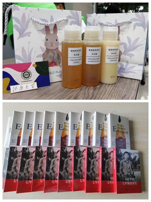 公司护肤品体验中心和田言书香辅导员工作室为新生准备特色礼包