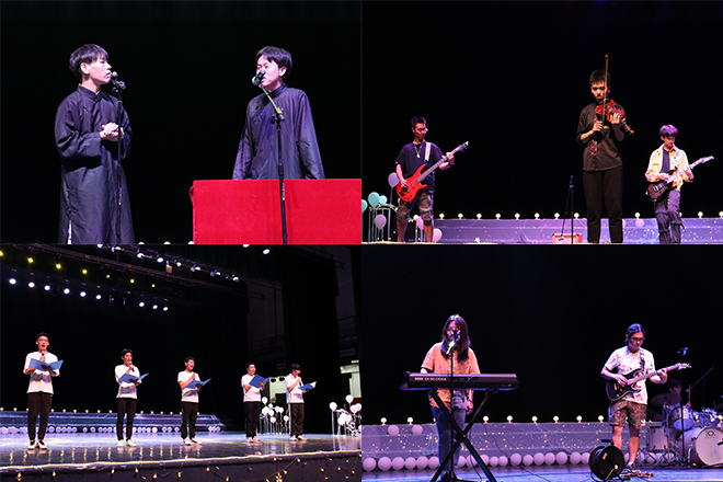 本次晚会由12个节目组成,《Black bomb》用一段劲歌热舞将全场气氛带动起来,现场反响相当热烈。歌曲《男孩》优雅简单,《慢冷+凄美地》凄美空灵,相声《我要穿越》结合历史知识与大量整散包袱结合,现场笑声不断。校艺术团器乐部用默契的配合与精彩的演奏重新演绎名曲《前前前世》,舞蹈《最后一天》将柔美展现的淋漓尽致,《歌曲串烧》将三首歌完美地糅合,用悠扬干净的歌声带来一场听觉盛宴。舞蹈《Papilon》又美又飒地表现了柔美与力量的结合。随后歌曲《流浪天涯》将全场气氛调到了最高点,诗朗诵《告别江南》则是用娓娓道来的方式讲述着大学四年的故事。教师节目《我爱你中国》,员工会节目《海芋恋》得到了现场热烈掌声。晚会还包含了三轮玩法不同的抽奖环节,提高了观众的参与度,让现场气氛更加活跃。