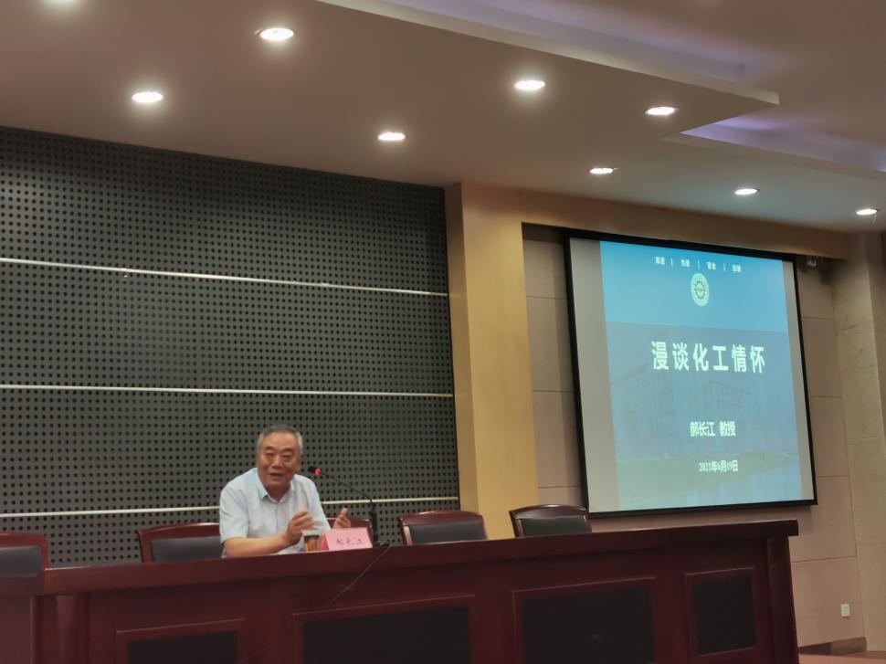 2021年6月18-20日,中国化工教育协会郝长江会长应邀来公司对人才培养和专业建设工作进行指导交流,19日下午在化工楼B329会议室为PA视讯官方网站师生做题为“漫谈化工情怀”的主题报告。