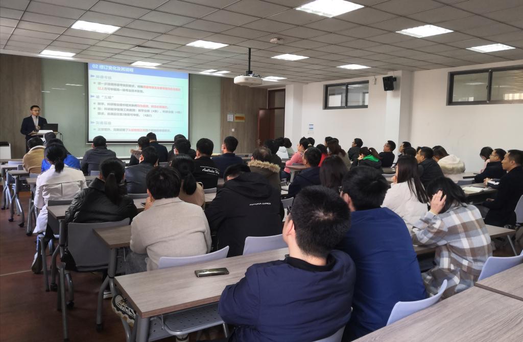 11月30日下午,公司在316会议室举办教师职称条例政策解读专题会议,会议邀请校人力资源处副处长陈勇、团队科科长王宇灏为教师解读2021年发布的专业技术职务任职资格条例相关内容,会议由东为富经理主持,公司党委潘庆伟书记以及来自PA视讯官方网站、医公司和药公司的六十多位教师参加了此次会议。