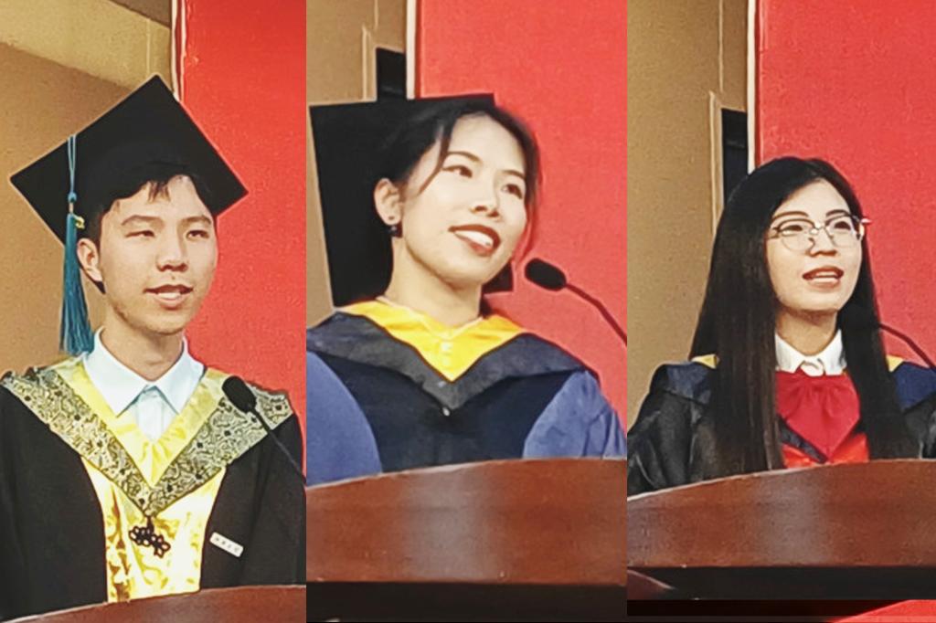 毕业生代表高分子1803班祝晗旭、化学工程与技术2019级茅沁怡、化学工程与技术2018级梁雪分别代表本硕博毕业生发言,讲述了各自与公司四年、七年和九年的缘分与情谊,表达了对母校、对公司、对老师的感恩之情,对踏上人生新征程的坚定信心。