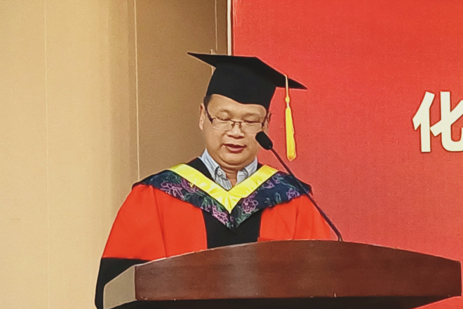 应化系系主任刘雪峰、材料系系主任罗静、化工系副主任钮腾飞共同表达了对全体毕业生们的期许,希望同学们今后用自己的努力与实际行动,践行“笃学尚行,止于至善”的校训。教师代表化工系蒋平平教授则告诫大家就业择业的重要性,他希望同学们“选对路,选好路”,鼓励同学们选择化工这一对国家战略发展有重要基础、且大有可为的行业,与国家共命运同进步!