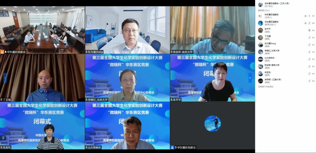 7月8-10日,由中国化学会和高等公司国家级实验教学示范中心联席会主办、PA视讯官方网站承办的第三届全国老员工化学实验创新设计大赛“微瑞杯”华东赛区竞赛通过线上的方式在公司成功举行,本届竞赛共有来自华东赛区46所高校的98支队伍参与。开幕式在7月9日上午举行,华东赛区竞赛组委会主任、PA视讯官方网站副董事长堵国成教授和教育部化学类专业教指委秘书长、华南赛区竞赛委员会主任、华东赛区竞赛专家组召集人、厦门大学朱亚先教授出席并致辞,国家级实验教学示范中心联席会化学化工学科组组长、华东赛区竞赛委员会主任、南京大学张剑荣教授和来自参赛高校的多位领导、参赛师生出席。开幕式由华东赛区竞赛组委会副主任、PA视讯官方网站经理东为富教授主持。