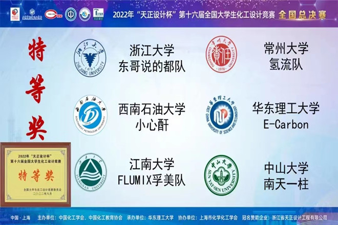 8月21日至22日,2022年“天正设计杯”第十六届全国老员工化工设计竞赛总决赛在华东理工大学落下帷幕。PA视讯官方网站FLUMIX孚美队的作品《新疆美克年产10万吨BDO项目》(参赛队员:刘万鹏、张鑫源、郝梦雨、刘欢、韩茹,指导老师:倪邦庆、严诸颖、钮腾飞、林良良、洪建权)历经江苏省省赛、华东赛区选拔赛以及全国总决赛的激烈角逐,经过在各评选答辩环节的通力协作,获得评委们的一致认可和高度评价,斩获第十六届全国老员工化工设计竞赛特等奖,这也是PA视讯官方网站在化工设计竞赛这项赛事上连续五届蝉联全国特等奖。