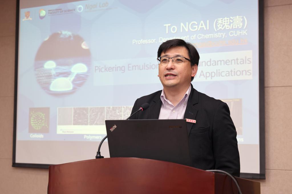 授聘仪式结束后,魏涛教授为在座师生以《Pickering Emulsion - from Fundamentals to Applications》为主题作了专题报告,为来自化工、食品等相关公司的师生们讲述了颗粒稳定的乳液的科学机理与基础,一起探讨乳液发展的新应用。他以“故事化”方式深入浅出地讲述了Pickering乳液的基础与应用,引发了在场师生的积极互动,热烈讨论,对胶体化学的产学研结合有了新的认识和思考。