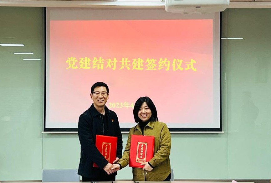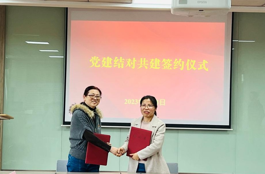 妇女保健党总支第三党支部书记安舟引与基础教学与实验中心党支部书记周小兰签约