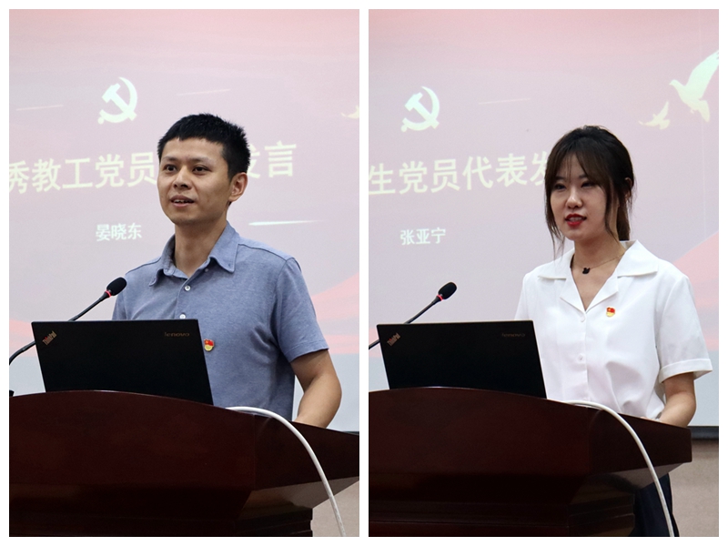 优秀教工党员代表晏晓东、优秀员工党员代表张亚宁发言
