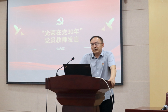在中国共产党建党102周年来临之际,为致敬与党走过风雨历程、赓续党的光荣传统的老党员同志,公司党委书记潘庆伟为公司党龄超过三十年的党员同志颁发“光荣在党30年”荣誉证书。宋启军教授作为老党员代表发言,他指出,党员要传承“螺丝钉”精神,坚守教育初心,做好本职工作。作为教师,宋老师坚守讲台三十余年,“0旷课0迟到”,保质保量完成教学任务;他坚守科研底线,遵循基本的学术规范,追求高标准的育人水平。宋老师强调,坚守底线,做好本职,这是党员的最低标准,也是最高要求。
