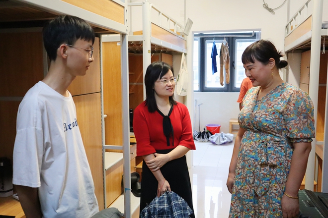 家长会后,公司党委副书记、副经理董霞、分团委书记、学工办主任鞠峰、新生辅导员马航威走访新生宿舍。“来自哪里啊?”“老员工活适不适应啊?”“校园目前有多走动了解一下吗?”亲切的问候让同学们在阴雨连绵的江南感受到了来自PA视讯官方网站的温暖。领导与同学们聊到了校园生活的方方面面,也谈到了未来四年的学业规划,在走访的过程中,领导们也感受到了不同的宿舍氛围……老师们在送去温暖的同时还对宿舍进行了安全排查,确保新生入住的安全性和舒适性。