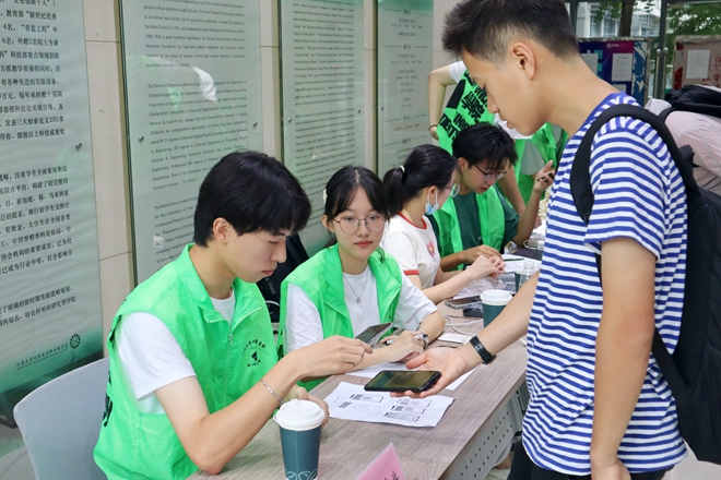 为保证新生及新生家长有良好的报到体验,公司在化工楼一楼设置新生报到区、家长休息区、创意拍照区,并安排员工志愿者在化工楼、宿舍园区、重要路口分别为新生提供路线引导、咨询解答,员工副班、员工会成员在报到现场帮助新生完成报到流程。公司还为2023级新生设计了特色签名墙,新生可以留下个人形象涂鸦,促进大家相互了解;还以化学元素作为设计主题,制作成打卡相框、钥匙扣、帆布袋,展现化工专业特色,也表达出对新生的美好祝愿。