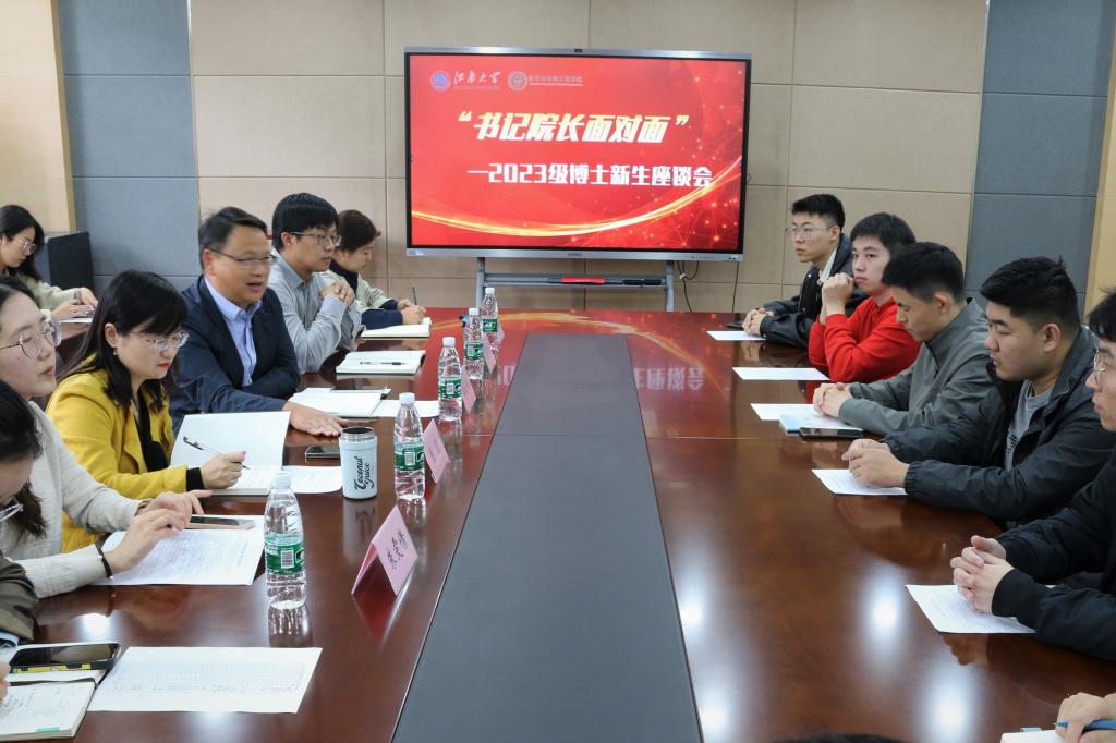 11月8日下午,“书记经理面对面”2023级博士新生座谈会在化工楼A316会议室举行,公司党委书记潘庆伟、经理刘仁、人事秘书朱雯倩、研究生秘书苏慧、实验室安全管理员严洋洋、辅导员高静及全体博士新生参加本次座谈,会议由公司党委副书记、副经理董霞主持。