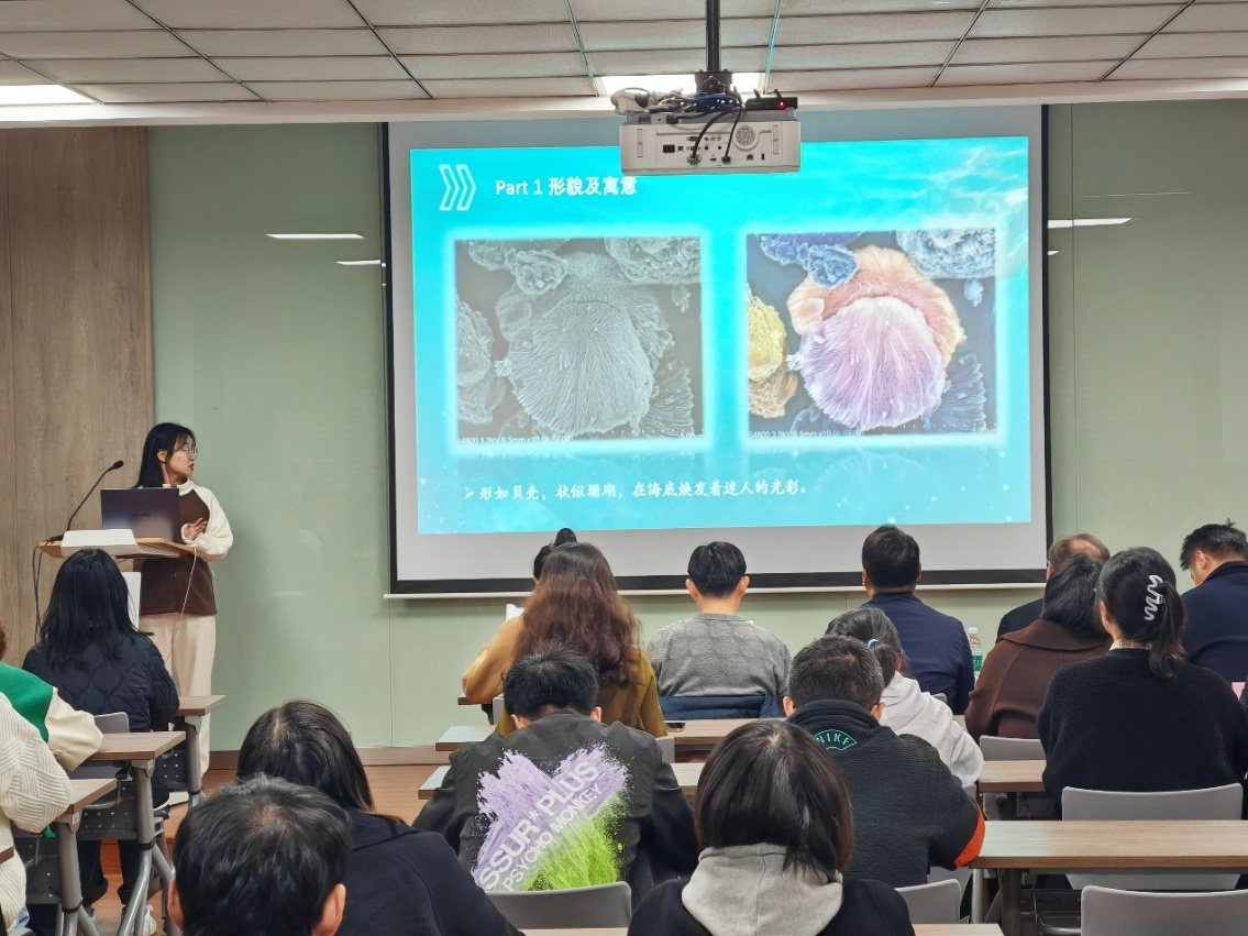 经过初赛的激烈角逐,9位同学成功入围决赛现场。参赛同学向评委老师介绍了他们的创作过程,如何通过镜头捕捉到材料微观之美以及对作品的诠释。评委老师从作品的科学性、技术性、艺术性、创意性四个方面进行了点评和打分。