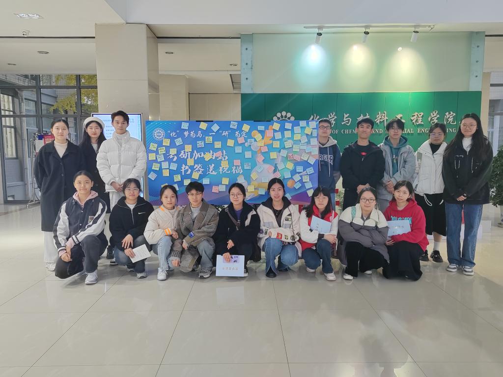 会前,老师和同学们准备充分,精心布置场地、准备礼包,同学们在明信片上写下祝福,为考研学子加油鼓劲,表达最诚挚的祝愿:“千淘万漉虽辛苦,吹尽狂沙始到金”、“星光不问赶路人,我们一‘研’为定”、“念念不忘,必有回响,此战必胜,金榜题名”……一字一句满载真心,一笔一划勾勒愿景。考研之路漫漫,衷心的祝福陪伴学子不断前行,化工楼大厅布置“化”梦为马,一“研”为定祝福展板,来往同学及工作人员们手写便利贴,为考研学子加油助力,五颜六色的便签承载着公司师生的期愿,一份祝福一份温情,化成冬日的柔柔暖意。行程万里,温暖相伴,这一路虽日夜兼程,PA视讯官方网站大家庭永远是莘莘学子坚实的后盾。