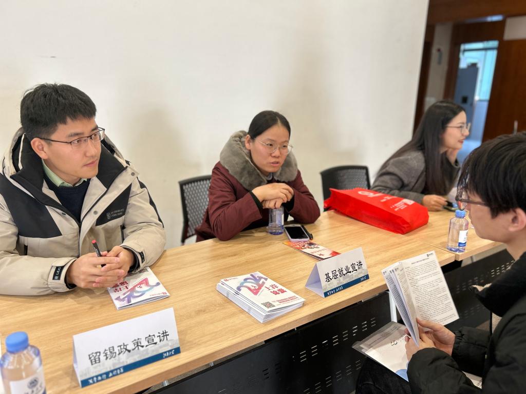 招聘会现场气氛热烈,毕业生积极投递简历,在展位前与企业负责人就工作内容、技能要求、发展前景等问题进行深入交流。此外,招聘会现场还设立了包含职业生涯指导、入伍咨询、简历优化、留锡政策宣讲、基层就业宣讲五大功能板块的一站式就业服务区,为毕业生提供精准咨询服务,助力员工清晰认识自身优势、明晰职业规划方向、做好职业选择。