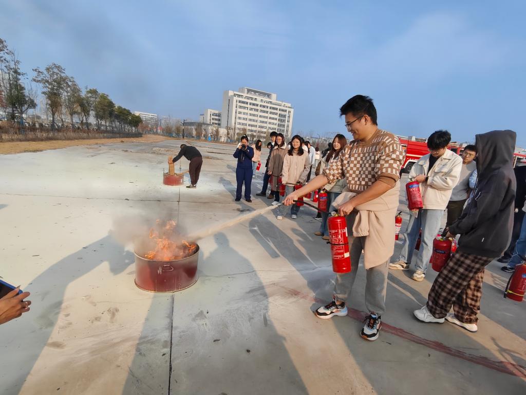 活动开始前,宜兴研究生院管理办公室、消防维保单位和物业工作人员在校区南门大停车场空地提前布置好灭火器、汽油等消防演练物资,在知行楼和清源楼做好烟幕弹安置以及人员疏散路径导引等准备工作。