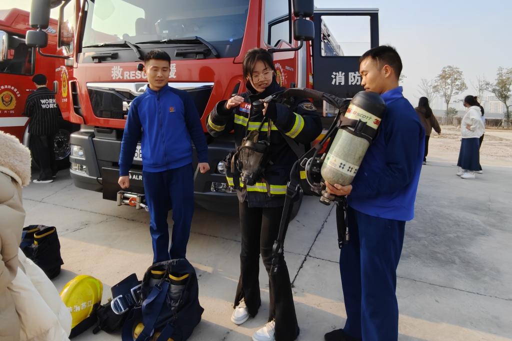 集团消防维保单位负责人,带领员工进行灭火、烟雾逃生等模拟训练,将知识性和趣味性融为一体。消防救援大队官兵,为员工讲解现场消防水泡车、应急救援车的结构和功能、装备的使用,并让员工上车实际体验,同学们兴致盎然。在灭火演练场地,官兵们讲解了有关火灾现场的应急处置,灭火器的使用原理以及相关的注意事项,牢记灭火关键步骤和要领。在认真听讲及观摩后,参加演练的师生分批亲自体验了现场灭火的过程,面对熊熊燃烧的火堆,教师和员工们表现得十分沉着,熟练地按照灭火的步骤和方法,将汽油燃起的浓烟大火成功的迅速扑灭。最后,消防救援大队官兵还到访了知行楼实验室、宿舍区等人员密集、消防安全重点场所部位,实地查看校区消防设施条件建设和物资配备情况,为公司消防安全工作把脉,加强公司和地方的交流合作。