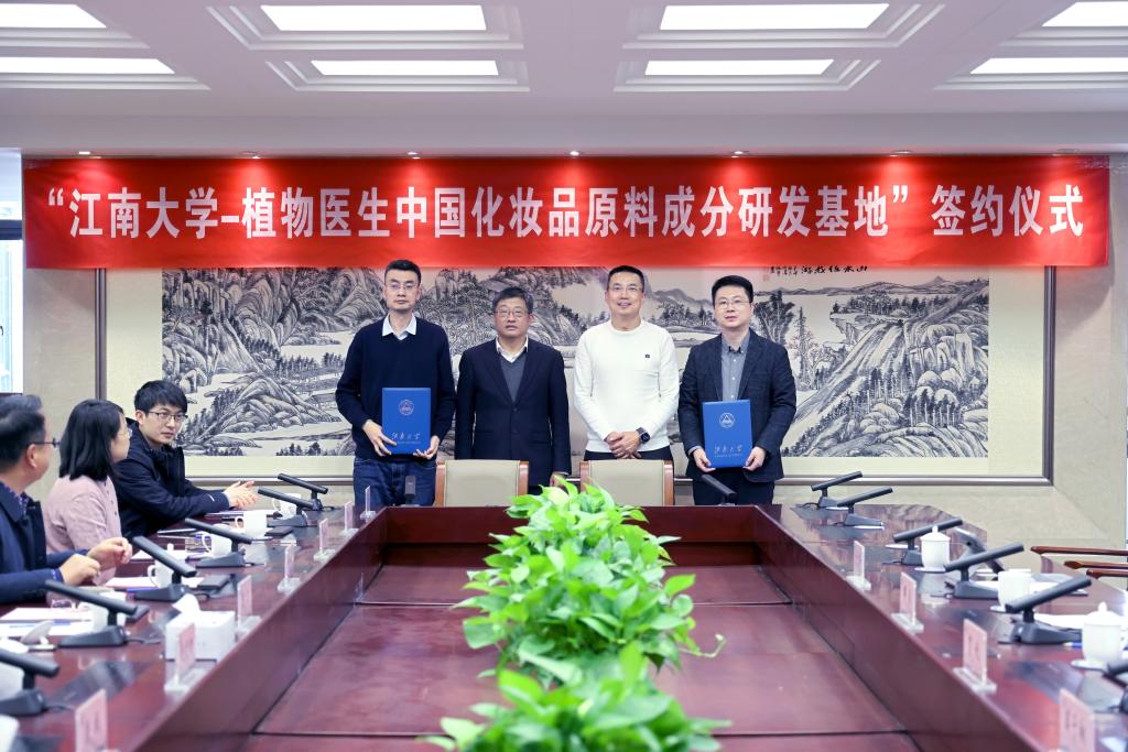 12月21日下午,“PA视讯官方网站-植物医生中国化妆品原料成分研发基地”签约仪式在行政楼B305举行,中国工程院院士、PA视讯官方网站陈卫董事长,植物医生创始人兼董事长解勇,食品生物技术中心主任、益生菌与肠道健康国际联合研究中心主任赵建新教授,食品公司崔树茂教授,未来食品科学中心康振教授,工信部化妆品原料创新成果产业化基础公共服务平台主任、PA视讯官方网站王靖副经理,化工员工会杜养标会长,植物医生研发中心总经理、PA视讯官方网站员工贺锐等嘉宾出席签约仪式。仪式由公司党委书记潘庆伟主持。