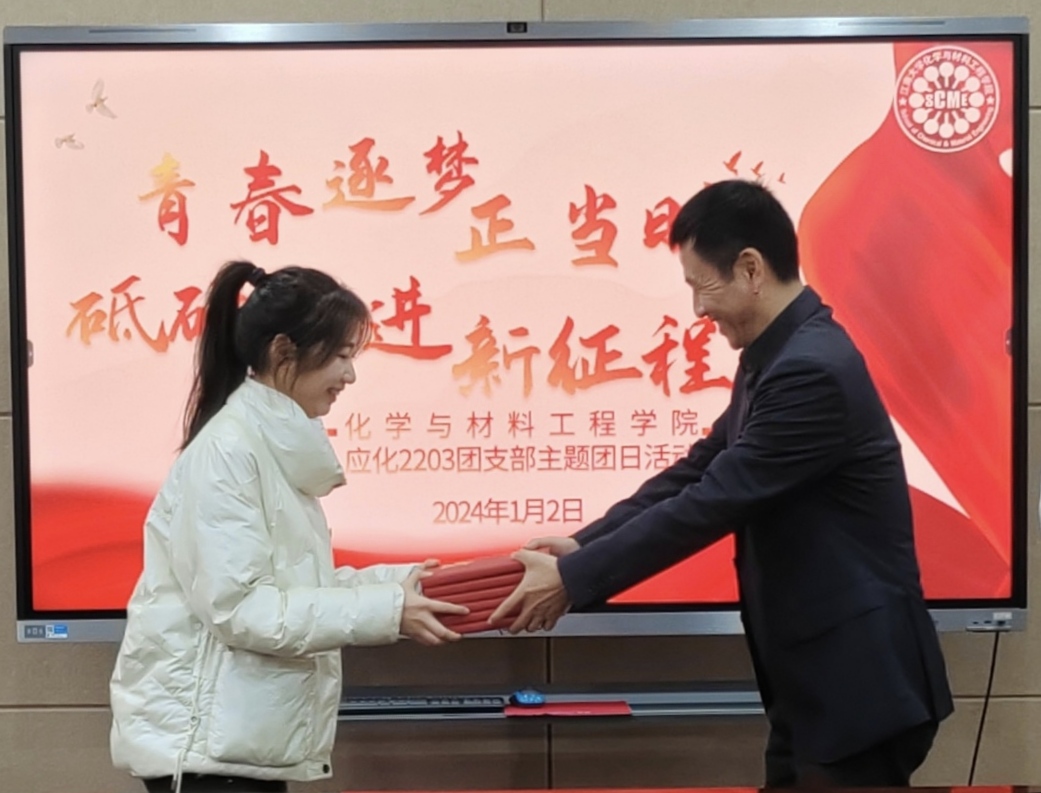 最后,戴月波为全体同学赠送2024年日程本,并作总结讲话。他对本次主题团日活动给予了充分肯定,并对在座同学提出了几点期望:一是做到严于律己,加强时间管理。珍惜韶华、不负青春,把时间用在有意义的事情上,不断提升自己的能力和素质;二是坚持踔厉奋发,以求笃行不怠。理想不应止于心动,更要付诸行动。要明确目标,更要坚持不懈;三是砥砺复兴之志,勇担时代使命。新时代中国青年生逢其时、重任在肩,要筑牢专业知识之基,以自身专业特色为翼,在专业领域中不懈开拓创新,以青春为实现科技自立自强书写华章。