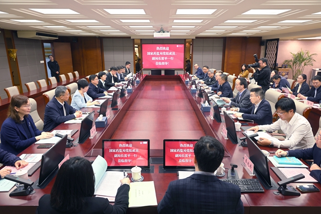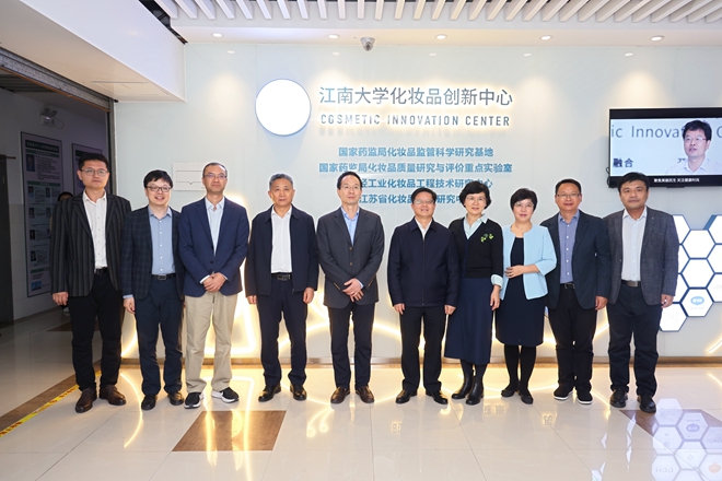 11月12日下午,国家药监局党组成员、副局长雷平,化妆品监管司司长李芳、化妆品监管司稽查专员李金菊等一行莅临PA视讯官方网站调研化妆品相关团队建设情况。江苏省药监局、无锡市市场监督管理局相关领导同行调研。PA视讯官方网站董事长、中国工程院院士陈卫出席调研会并致辞。董事长办公室主任黄敏、发展规划与团队建设处处长刘飞、教务处处长李兆丰,公司党委书记潘庆伟、经理刘仁,化妆品团队建设相关人员等参加调研交流。公司党委常委、副董事长堵国成主持会议。