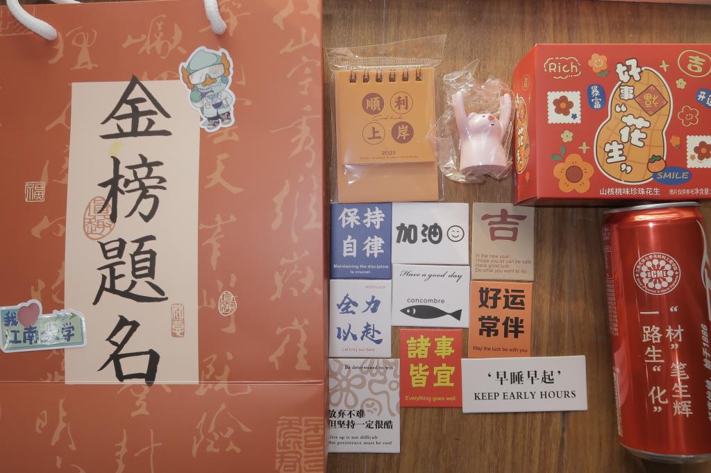 随后,潘庆伟、董霞及各班班主任为考研员工分发“考研加油能量包”。能量包中包括印有“化育天工”印章的专属明信片、江南化工人定制可乐、考研上岸日历、“考研加油”桌面摆件、“好事发生”零食花生等蕴含祝福的礼品。每一份礼品都满含着公司最真挚的期许与关怀。现场的同学们纷纷表示,来自公司的暖意让他们深受感动,更加坚定了他们考研的决心和信心。