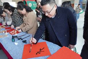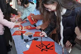 在公司一楼大厅活动现场,写春联、剪窗花、投壶等极具传统文化特色的活动区域人潮涌动。在写春联区域,老师们挥毫泼墨,一副副寓意吉祥、饱含祝福的春联在笔下诞生;剪窗花区域,巧手翻飞,精美的窗花在老师们的手中绽放,为新春增添了一份别样的艺术气息;投壶区域,老师们凝神静气,将箭矢投向壶中,在体验古代传统游戏乐趣的同时,也感受到了传统文化的独特魅力。